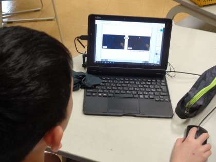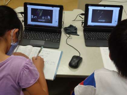 星の動きについて、観察の結果と比べながらデジタル教科書で確認しました。子供たちは、様々なツールを使って、分かりやすくまとめようと活動していました。