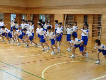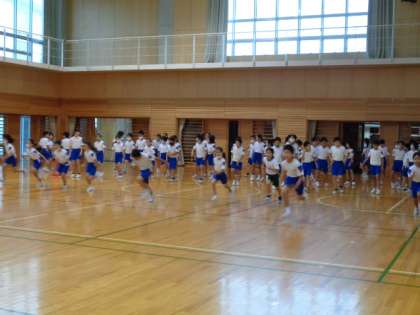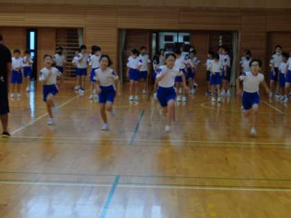 登校後、体力つくりに取り組んでいます。ランRUNオリンピックで力を発揮できるよう、走力を高めています。