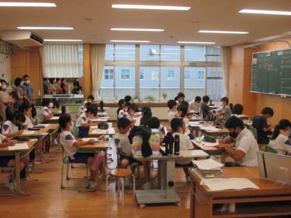子供たちは、保護者の方々に見守られながら真剣に学習に取り組んでいる様子が見られます。