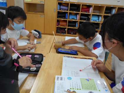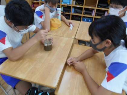 水のはたらきによる地層のでき方について調べました。子供たちは、楽しみながら学習に取り組んでいました。