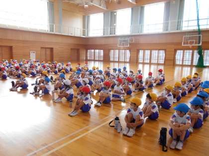 ランRUNオリンピックに向けて、各色団の顔合わせをしました。しっかりと話を聞く姿勢は、子供たち一人一人のやる気を感じました。