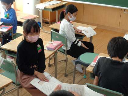国語科「世界にほこる和紙」では、筆者の考えや伝えたいことが分かる文を探して話し合いました。