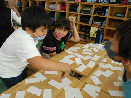 2つ合わせて習った漢字になれば、もう1回引くことができる、というルールで行いました。