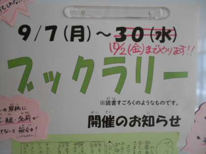 読書の秋です。図書室では、図書委員会企画のブックラリー開催中です。コロナ対策もしっかりと行っています。