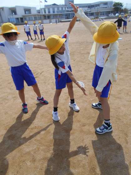 秋晴れの気持ちのよい日となりました。3年生は理科の学習で太陽と影の学習を行っています。今日は、グラウンドに出て、太陽の向きと影の関係を調べました。