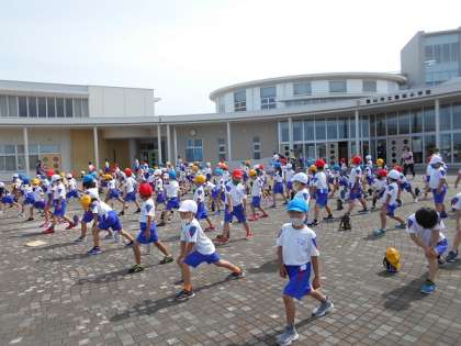 しっかりと準備体操をして、色団に分かれて初めての練習でした。みんな、気合いが入っていました。