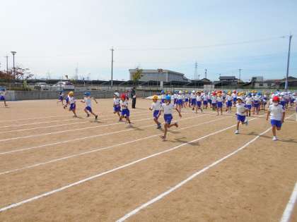 今日は天気もよく、グラウンドで50メートル走の練習をしました。