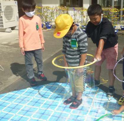 2組は、3回目のしゃぼん玉づくりを行いました。