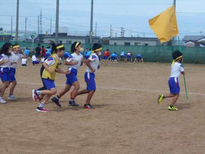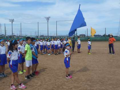 旗手を先頭に退場する練習を行いました。 揃った動きがとてもすてきですね。