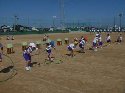 また、6年生にラジオ体操の手本になってもらったり、巧緻走で使う用具を準備してもらったりしました。トイレにも一緒に行ってもらいスムーズに進行することができました。