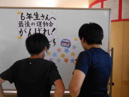 低学年に優しく接する6年生の姿を見て、5年生がカードにメッセージを書いてエールを送りました。
