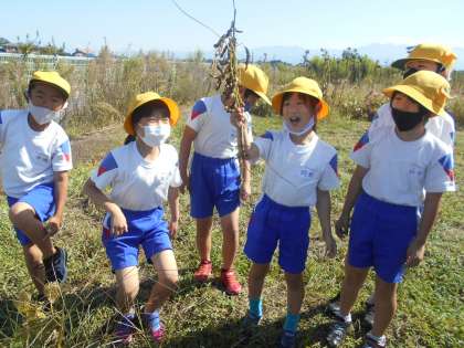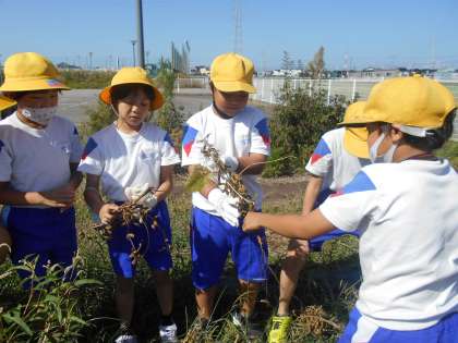 総合的な学習の時間に育てていた大豆がついに実り、今日、すべての収穫を終えました。