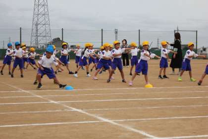 大きな動きになるように練習しました。