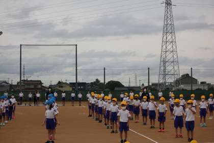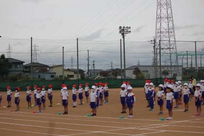 開会式。たくさんのおうちの人の前で、大きな声で意気込みを言いました。