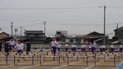 5年生 ランRUNオリンピックを行いました。 ハードル走の様子です。