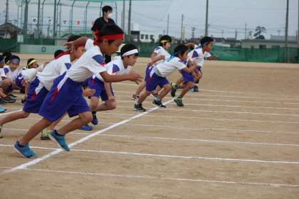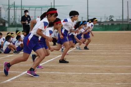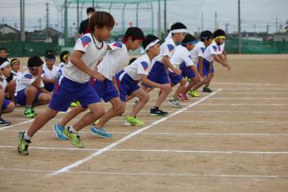 ゴールを目指して一直線!腕を大きく振り、ゴールを越えるまで全力で走り抜くことができました。