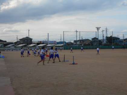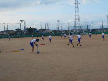 5年生は、「ベースボール型ゲーム」に向けて、今日はバッティング練習。