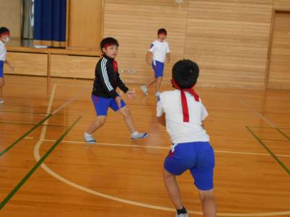 3年生は、体育科の学習でタグラグビーの練習を行っています。
