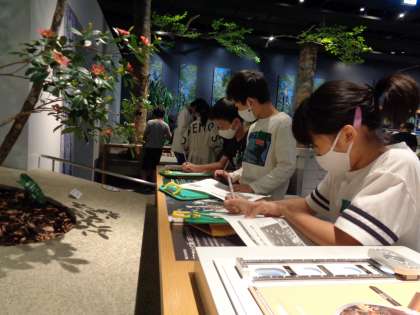 生き物について学びを深めました。剥製や資料を見て分かったことを、熱心にメモしていました。