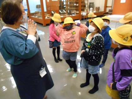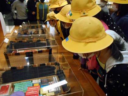 実際に売薬さんが着ていた服や、薬の入った大きな箱を見て、驚いていました。