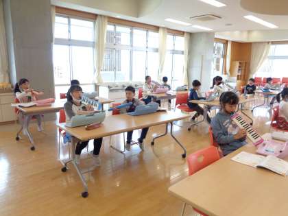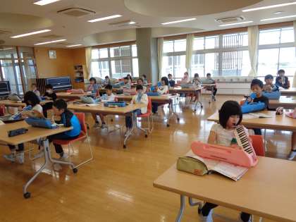 音楽科では、自分で課題を選んで取り組んでいます。右手で弾けるように一生懸命に練習したり、立奏で弾けるようにチャレンジしたりする姿が見られました。