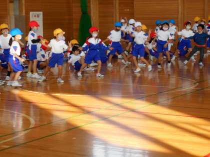 金曜日の朝、低学年の子供たちは、体力つくりに取り組んでいます。