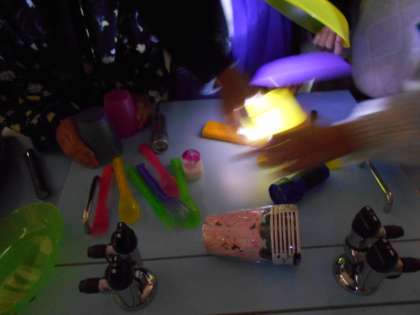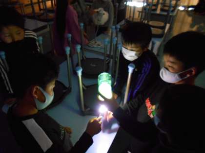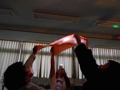 換気をしていたため、真っ暗にはなりませんでしたが、暗くした室内で光が作り出す美しさを楽しむ子供たちの姿が見られました。
