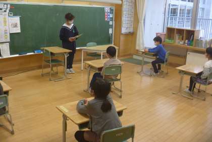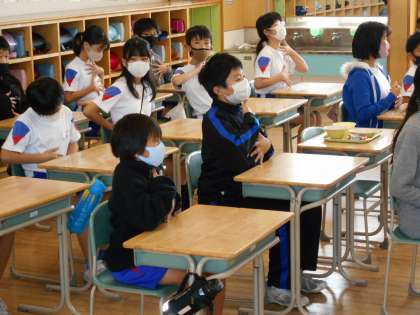 今週から、保健委員の子供たちが、各学級に「よい姿勢のグー・チョキ・パー」を伝えに行っています。それぞれの教室では、委員のお手本を見ながら、よい姿勢に取り組む姿が見られました。