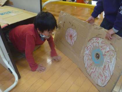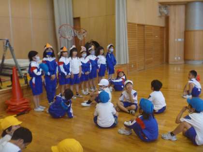2組は、豊田っ子タイムに集会を行い、鬼ごっこや迷路遊びを楽しみました。