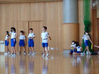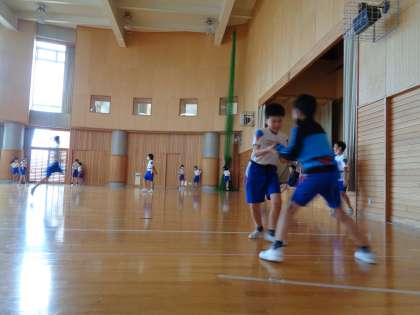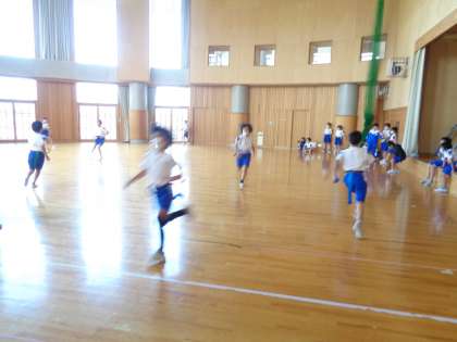 係がルール説明をして、しっぽ取りゲームをしました。サブアリーナを縦横無尽に駆け回る姿が微笑ましかったです。