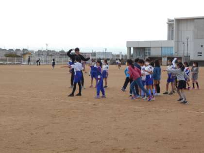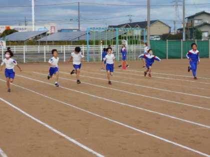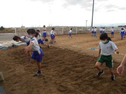 グラウンドでは、半袖姿の豊田っ子が元気に運動に取り組んでいます。