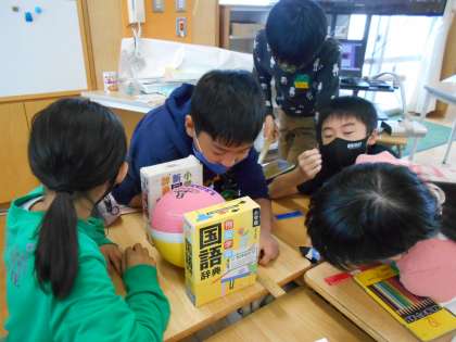 球であるドッジボール、サッカーボール、野球のボールの3つのボールを国語辞典で挟み、30cmものさしでそれぞれのボールの直径を測りました。