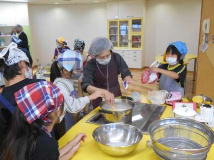 今日は、3年2組の子供たちが6名の講師の先生の指導のもと、豆腐づくりに挑戦。
