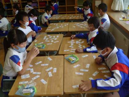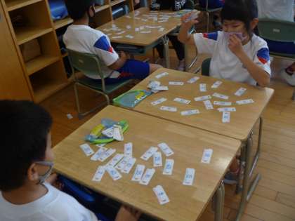 友達が言った九九の答えのカードを取ったり、みんなで九九ビンゴをしたりしながら、ゲーム形式で楽しく練習をしました。