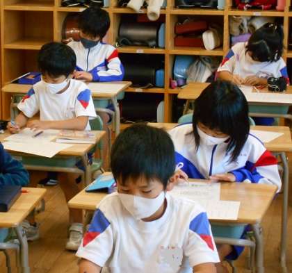 国語・算数パワーアップの朝学習です。漢字や計算練習などに集中して取り組んでいます。
