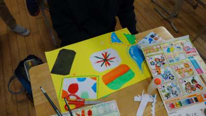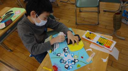 図画工作科「こころのもよう」では、自分の心の中を水彩を使って表しました。