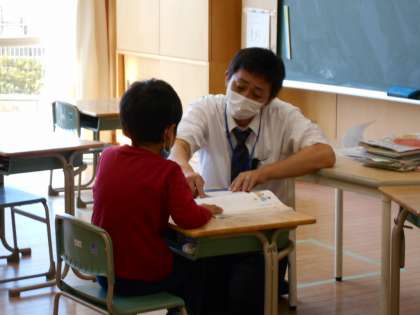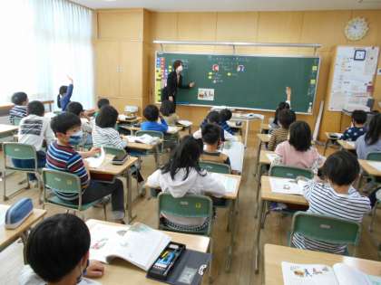 わかば級は道徳「もみじがり」、1年4組は道徳「ぼくはずかしいや」、2年1組は道徳「モムンとへーテ」の学習をしていました。