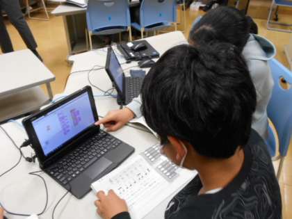 スクラッチというソフトを使い、5年生は音楽科で旋律づくりに挑戦しています。