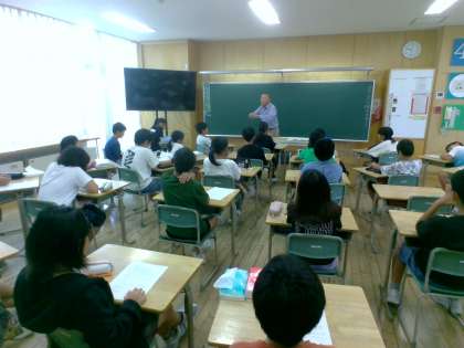 今日は自治振興会副会長の松本さんに来校していただき、防災教室をしていただきました。