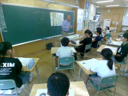 豊田地区の防災マップのことや、避難所を開設されたときのお話をしていただき、子どもたちは自分ごととして真剣にお話を聞いていました。