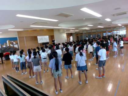 音楽発表会に向けての学年練習がスタートしました。今日は、歌うときの姿勢や声の出し方を確認しました。