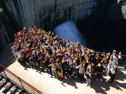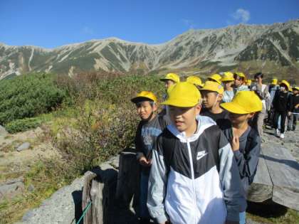 1日目は、黒部ダムへ行きました。放水の際には虹が見えました。子供たちは景色をみて「きれい」「感動する」と話していました。