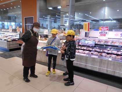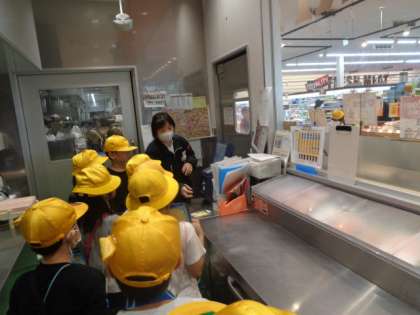 社会科では、スーパーマーケットに見学に行きました。4組の様子です。