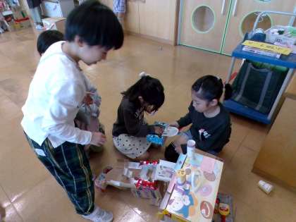 3年4組を招待して、4年4組で作ったコロコロガーレで遊んでもらいました。遊んでもらえるかドキドキしていた4年生でしたが、たくさん遊んでもらえてホッとしていました。