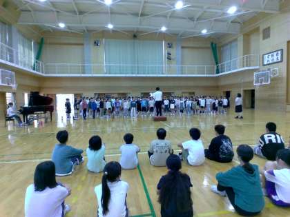 6年生をお客様に迎えて、最後の練習を行いました。今までの練習を振り返って、どのように歌うか、ひとりひとりが考えて歌の練習に臨んでいました。
