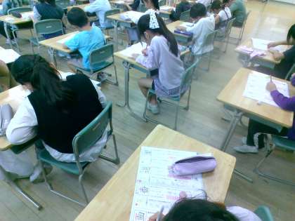 進出漢字の練習をしています。姿勢を正し、過基準を守って丁寧に書くように心がけています。