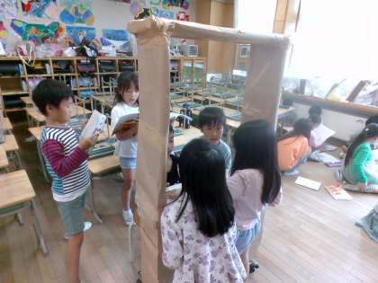 「お手紙」の音読劇の練習をしています。これまでの学習を生かして「かえるくん」と「がまくん」の気持ちの変化が伝わるように読み方を工夫したり、動きをつけたりしています。