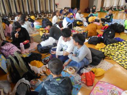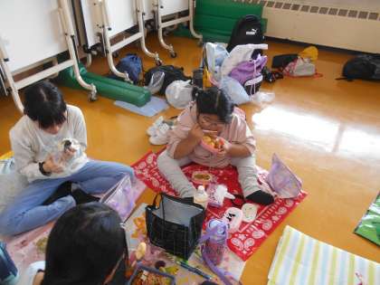 昼食の時間の様子です。班の友達とお弁当を食べました。友達との会話も楽しそうでした。