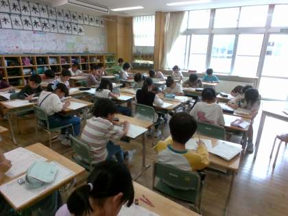 算数科では、かけ算の筆算を練習しています。今日はプリントを使って繰り返し練習をしました。