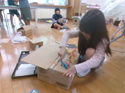 生活科ではお祭りを開くためのお店を準備しています。射的屋やかき氷屋など、各々が「お客さんも店員(私達)も楽しめる祭りにしたい」という願いをもって意欲的に活動しています。